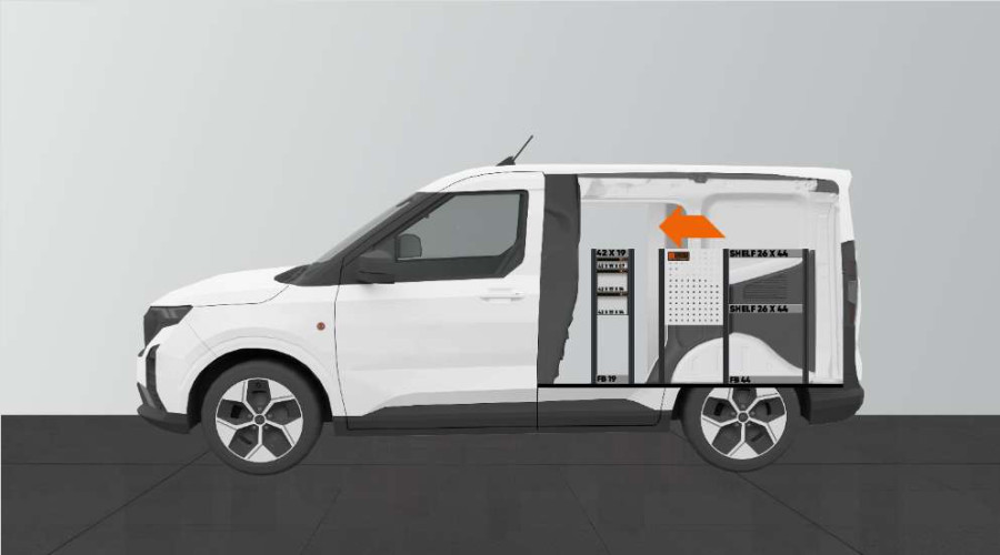 Möchten Sie Ihren Ford Courier L1mit einem weiteren Regal ausstatten? Diese Einrichtung ermöglicht es Ihnen, die Breite im Fahrzeuginneren beizubehalten, da die Tiefe der Einrichtung 260 mm beträgt. Die Einrichtung hat 4 verschieden große Schubladen auf Kugellagerschienen, mit denen sich unterschiedliche Aufbewahrungsmöglichkeiten schaffen lassen. Diese können durch Einsätze ergänzt werden, um Ordnung in Ihr Kleinteilsortiment zu bringen. Der Regalstauraum hinter der Schubladeneinheit wird häufig mit Modulboxen ergänzt. Das verteilte Ladegewicht in den Schubladen auf den Kugellagerschienen beträgt 35 kg/St. Die Schubladen-Innenmaße sind B: 163, T: 387, H: 60 und H: 130 (mm).