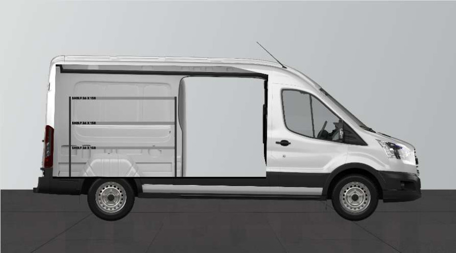 Eine kürzere Fahrzeugeinrichtung für alle, die die Breite ihres Ford Transit L3H2 beibehalten möchten. Die Einrichtung ist 262,5 mm tief und bietet gute Aufbewahrungsmöglichkeiten für Kleinteile, z. B. Schraubenpackungen und kleinere Artikel, geeignet für Hausmeister, Elektriker und Heizungs- und Sanitärinstallateure. Die Einrichtung passt zu Fahrzeugen mit und ohne Seitentüren, und es besteht die Möglichkeit, die Einrichtung durch unsere cleveren Modulboxen zu ergänzen. Die Ergänzung der Regalwände durch unsere Smartboxen ist ebenfalls eine beliebte Alternative, um den Stauraum zu maximieren.