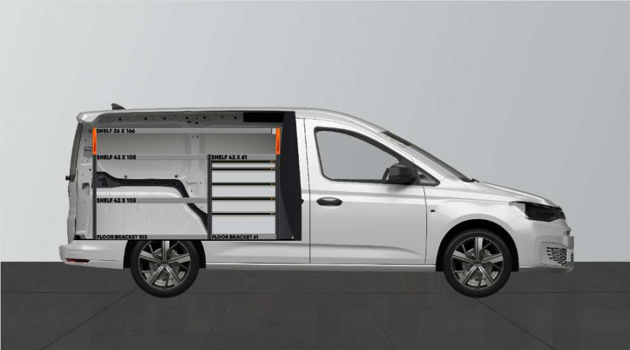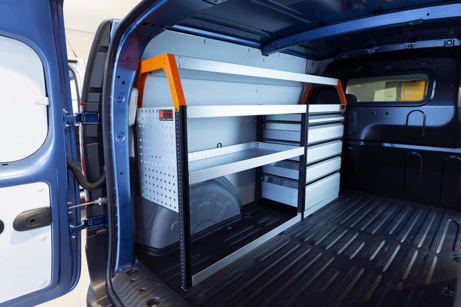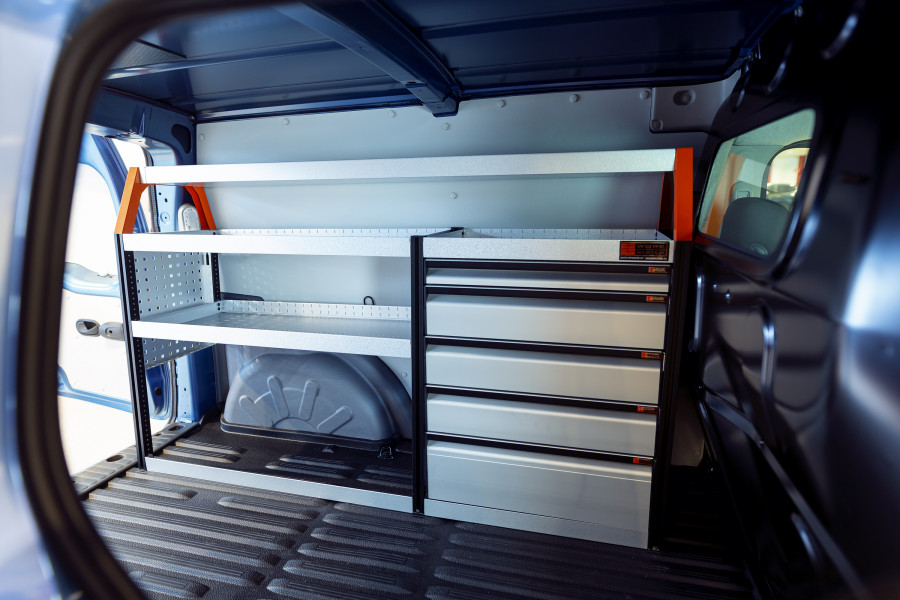 Dies ist eines der beliebtesten Systeme für den VW Caddy Cargo & Ford Connect L2. Die Einrichtung bietet gute Aufbewahrungsmöglichkeiten für Werkzeugtaschen/-koffer, Maschinen und Kleinteile. Sie umfasst eine Schubladeneinheit mit 5 Schubladen in verschiedenen Größen, damit jedes Teil der Ausrüstung seinen Platz erhält. Die Schubladen auf Kugellagerschienen werden häufig durch unsere neuen Schubladeneinsätze und Trennwände ergänzt, um maximale Ordnung und Übersichtlichkeit zu gewährleisten. Die Ergänzung der Regalwand durch unsere Smartboxen ist ebenfalls eine beliebte Alternative, um den Stauraum zu maximieren.