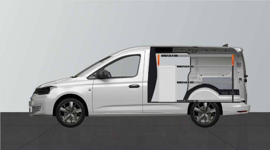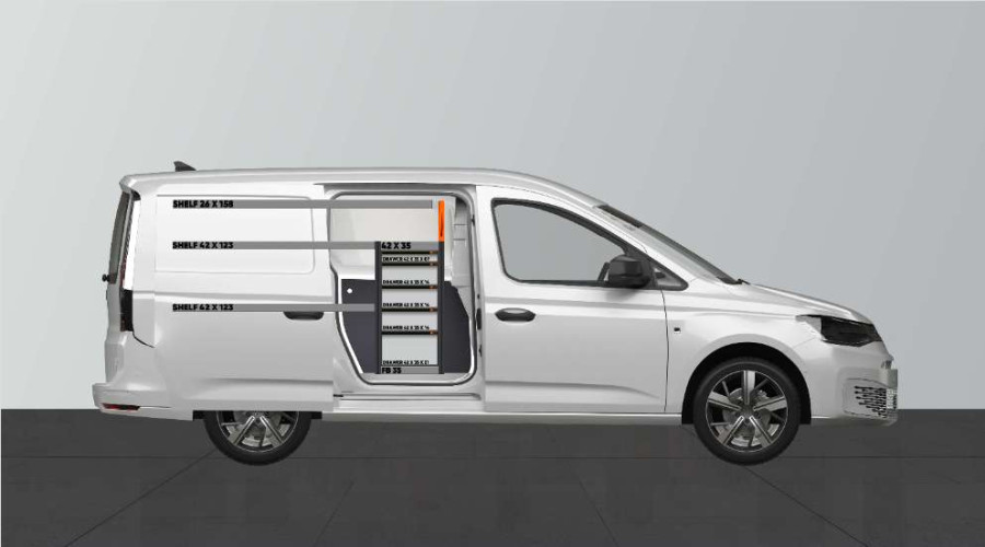 Dies ist eines der beliebtesten Systeme für den VW Caddy Cargo & Ford Connect L2 mit Seitentür auf der Seite der Einrichtung. Die Einrichtung bietet gute Aufbewahrungsmöglichkeiten für Werkzeugtaschen/-koffer, Maschinen und Kleinteile. Sie umfasst eine Schubladeneinheit mit 5 Schubladen in verschiedenen Größen, damit jeder Ausrüstungsgegenstand seinen Platz erhält. Hinter den Schubladen befindet sich eine Werkzeugtafel, die zusätzliche Aufhängungsmöglichkeiten im Fahrzeug bietet. Die Schubladen auf Kugellagerschienen werden häufig durch unsere neuen Schubladeneinsätze und Trennwände ergänzt, um maximale Ordnung und Übersichtlichkeit zu gewährleisten. Die Regalwand wird gerne auch durch unsere Smartboxen ergänzt, um den Stauraum zu maximieren.