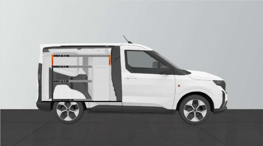 Dies ist eines der beliebtesten Systeme für den Ford Courier L1 mit Seitentür auf der Seite der Einrichtung. Die Einrichtung bietet gute Aufbewahrungsmöglichkeiten für Werkzeugtaschen/-koffer, Maschinen und Kleinteile. Sie umfasst eine Schubladeneinheit mit 5 Schubladen in verschiedenen Größen, damit jeder Ausrüstungsgegenstand seinen Platz erhält. Hinter den Schubladen befindet sich eine Werkzeugtafel, die zusätzliche Aufhängungsmöglichkeiten im Fahrzeug bietet. Die Schubladen auf Kugellagerschienen werden häufig durch unsere neuen Schubladeneinsätze und Trennwände ergänzt, um maximale Ordnung und Übersichtlichkeit zu gewährleisten. Die Regalwand wird gerne auch durch unsere Smartboxen ergänzt, um den Stauraum zu maximieren.