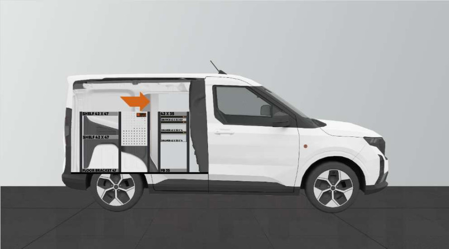 Eines der beliebstesten Fahrzeugregel für Ihren Ford Courier L1. Die Einrichtung bietet vielfältige Aufbewahrungsmöglichkeiten, da die Schubladen auf Kugellagerschienen einen einfachen Zugang über die Seitentür bieten; die Schubladen können in Fahrtrichtung herausgezogen werden, um eine gute Übersichtlichkeit zu bieten. Die Schubladen können um Trennwände ergänzt werden, um mehr Ordnung und Struktur beim Kleinteilsortiment zu schaffen. Unsere tiefen Regalböden bieten außerdem gute Aufbewahrungsmöglichkeiten für Werkzeugtaschen/-koffer und kleinere Maschinen. Das verteilte Ladegewicht in den Schubladen der Kugellagerschienen beträgt 35 kg/St. Die Schubladen-Innenmaße sind B: 308, T: 387, H: 60 und H: 130 (mm).