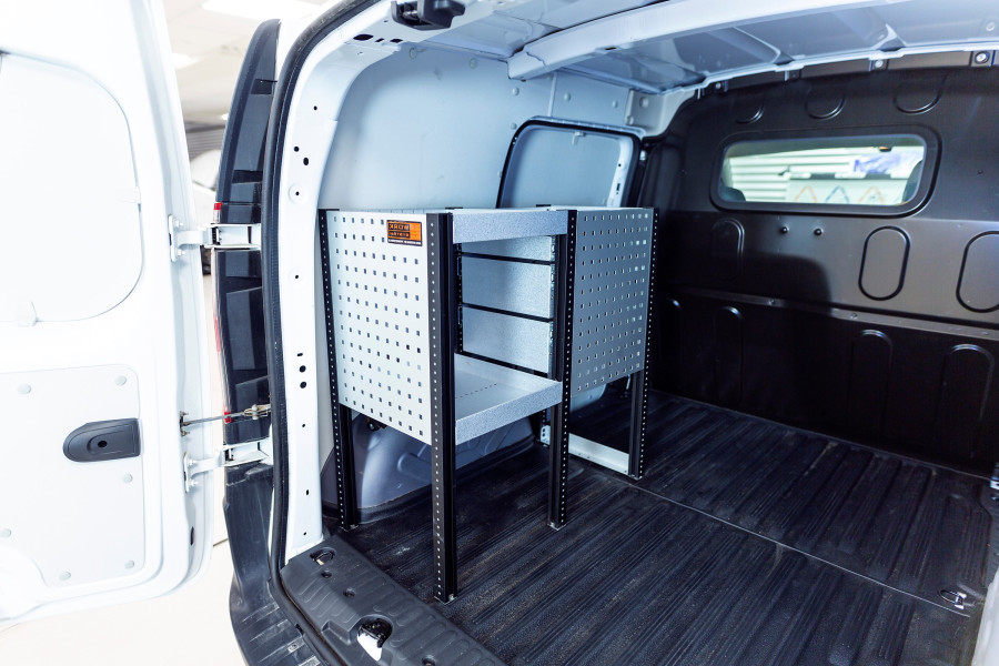 Mit der Serie Work System V-LS3 bieten wir Ihnen ein Fahrzeugregal für Berlingo, Combo, Proace City & Partner L2, bestehend aus einem Regal mit drei Schubladen, ausgestattet mit Kugellagerschienen.