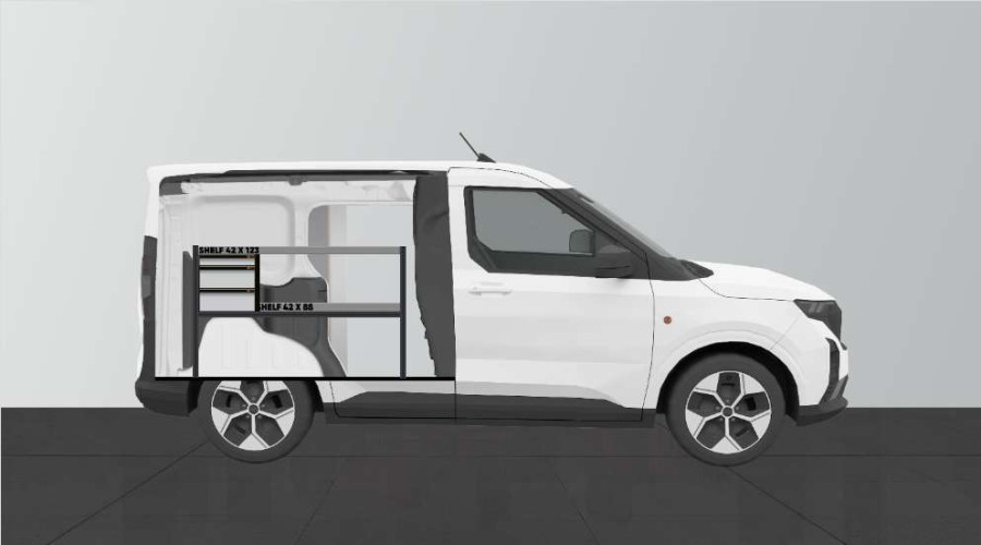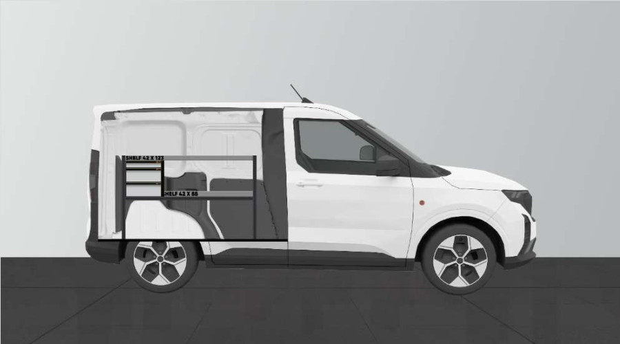 Eine einfachere Lösung unserer beliebten Fahrzeugeinrichtung mit Schubladen und Regalen für Ford Courier L1.
