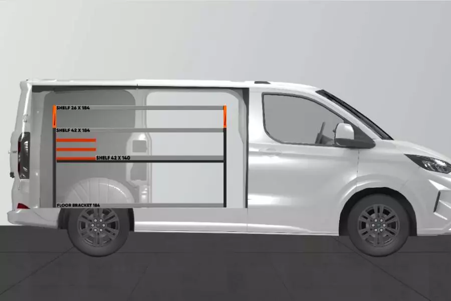 Eine beliebte Einrichtung für alle, die gute Aufbewahrungsmöglichkeiten für ihr Kleinteilsortiment sowie Werkzeugtaschen/-koffer und Maschinen benötigen. Diese Serviceeinrichtung enthält drei Sortimentskastenhalterungen, die an einen der beliebtesten Sortimentskästen auf dem Markt angepasst sind: Racco Carrylight. Die Einrichtung kann auf Wunsch um diese Sortimentskästen ergänzt werden. Die Fahrzeugeinrichtung passt perfekt zu Ihrem Ford Custom & VW Transporter L1.