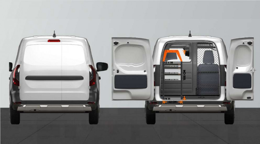 Diese Fahrzeugeinrichtung verfügt über eine leicht zugängliche Schubladeneinheit direkt hinter den Hecktüren des Citan, Kangoo & Townstar L1.
