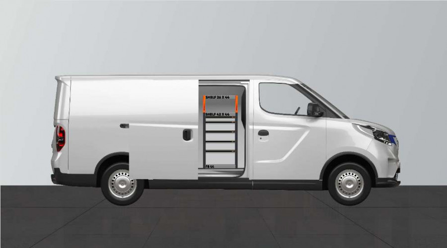 Mit dieser Fahrzeugeinrichtung erhalten Sie viel Stauraum in Regalen und Schubladen, geeignet für den Maxus e-Deliver 3 L2. (Rücknahme/Umtausch ausgeschlossen)