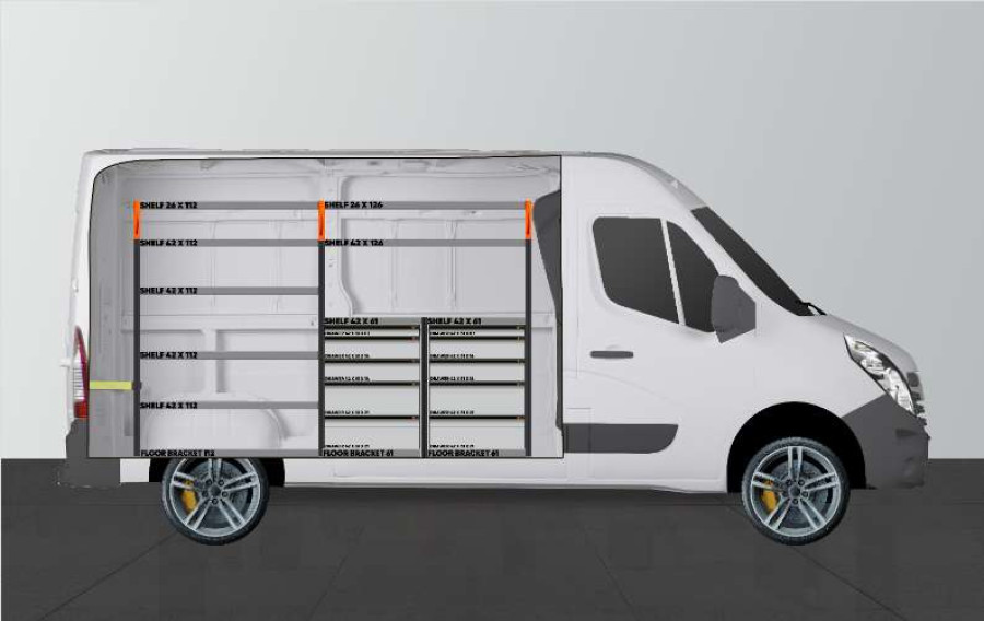 Suchen Sie nach einer Einrichtung mit vielen Schubladen? Stellen Sie außerdem hohe Anforderungen an Ihre Einrichtung? Dann ist dies die perfekte Wahl für Sie und Ihren Opel Movano, Renault Master & Nissan NV400. Die Einrichtung bietet gute Aufbewahrungsmöglichkeiten für Werkzeugtaschen/-koffer, Maschinen und Kleinteile. Darüber hinaus erhalten Sie eine Schubladeneinheit mit Schubladen in verschiedenen Größen, damit jeder Gegenstand seinen Platz erhält. Insgesamt sind 10 Schubladen auf Kugellagerschienen enthalten. Die Schubladen werden häufig durch unsere Schubladeneinsätze und Trennwände ergänzt, um maximale Ordnung und Übersichtlichkeit zu erhalten.