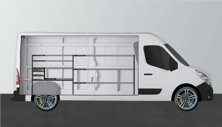 Eine einfachere Lösung unserer beliebten Fahrzeugeinrichtung mit Schubladen und Regalen für Movano, Master & NV400 L3.