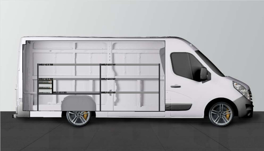 Eine preisgünstige Alternative für alle, die eine Kombination aus Schubladen auf Kugellagerschienen und Regalböden für ihren Opel Movano, Renault Master & Nissan NV400 L3 suchen. Dank einer Tiefe der Einrichtung von 420 mm lassen sich die meisten auf dem Markt erhältlichen Werkzeugtaschen/-koffer problemlos verstauen. Die Schubladen werden gerne durch unsere Schubladeneinsätze und Trennwände ergänzt, die es Ihnen erleichtern, Ordnung in Ihr Kleinteilsortiment zu bringen.