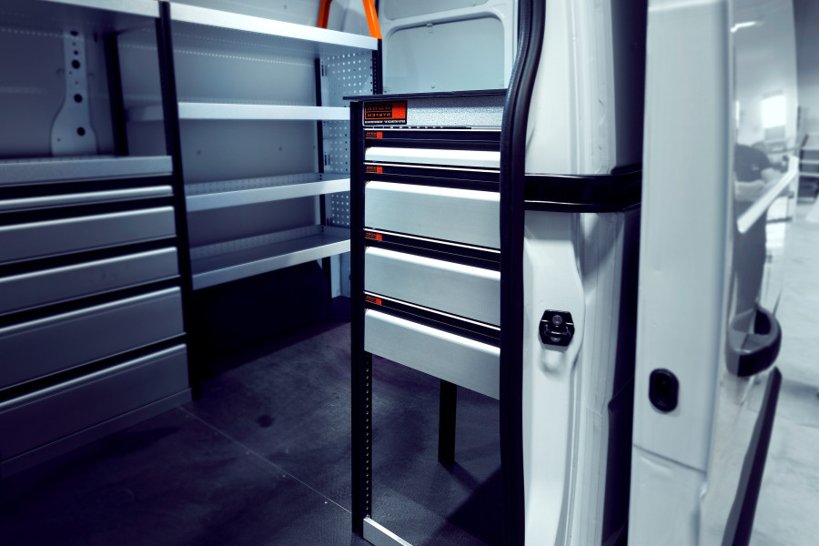 Diese aufgrund ihrer Kombination aus Schubladen und Regalen sehr beliebte Fahrzeugeinrichtung eignet sich für Talento, NV300 & Trafic L2.
