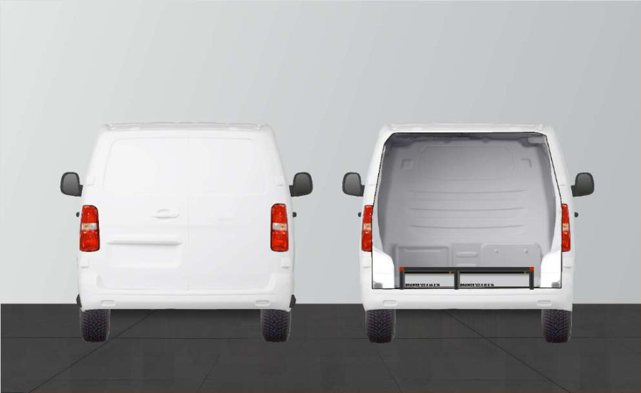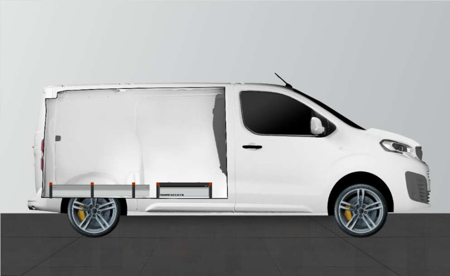 Das Unterflursystem ist geeignet für Peugeot Expert L2, Opel Vivaro L2 2020, Citroën Jumpy L2 & Toyota Medium mit Standard-Komfortwand.