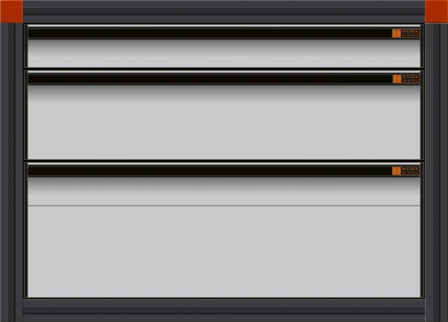 3x Schubladen: 1x 70 mm, 1x 140 mm, 1x 280 mm hoch